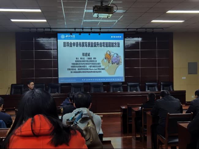 郑建斌教授在长达两个半小时的报告中,结合自己成功申请国家自然科学基金方面的心得与感悟,详细介绍了国科金申请书撰写质量提升的拐弯超越方法,提出了通过对项目指令中“题目、内容、目标、创新”等关键词的理解及常规逻辑等其他常识的运用,学习国家自然科学基金和社会科学基金申请书的撰写的新方法。郑教授的报告生动有趣,语言幽默,讲解深入浅出,使与会老师们受益匪浅。郑教授希望大家在后续的申报书写作方面常和他联系,相互学习,共同提高。