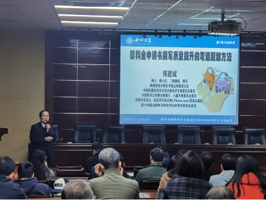 11月12日晚上,计算机学院在雁塔校区第五会议室召开2021年度国科金项目申报动员会,邀请西北大学郑建斌教授作了题为《国科金申请书撰写质量提升的拐弯超越方法》”的专题辅导讲座。学院党政领导以及全体教职工90余人参加了会议,会议由学院王魁生院长主持。