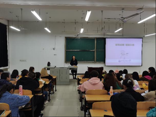11月11日,外国语学院在B121举办2020级新生入学系列教育第四讲。邀请学院副院长刘辉做“破茧成蝶 绽放自我”的主题报告。2020级辅导员陈浩、2020级全体学生参加本次报告会。