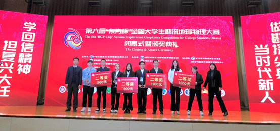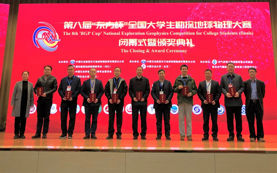 第八届“东方杯”全国大学生勘探地球物理大赛由中国石油集团东方地球物理勘探有限责任公司、国际勘探地球物理学家学会(SEG)、中国石油学会物探专业委员会、中国石油大学(北京)联合主办,由中国石油大学(北京)、中国石油集团东方地球物理勘探有限责任公司承办,由油气资源与探测国家重点实验室、教育部复杂油气藏勘探开发工程研究中心协办。大赛闭幕式暨颁奖典礼11月3日在中国石油大学(北京)举办。中国科学院院士、中国石油大学地球物理学院名誉院长朱日祥、国际勘探地球物理学家学会(SEG)中国区执行总裁黄旭日、中国石油东方地球物理公司党委书记、执行董事、总经理苟量、中国石油大学(北京)校长张来斌以及相关企业、高校师生200余人参加颁奖典礼。