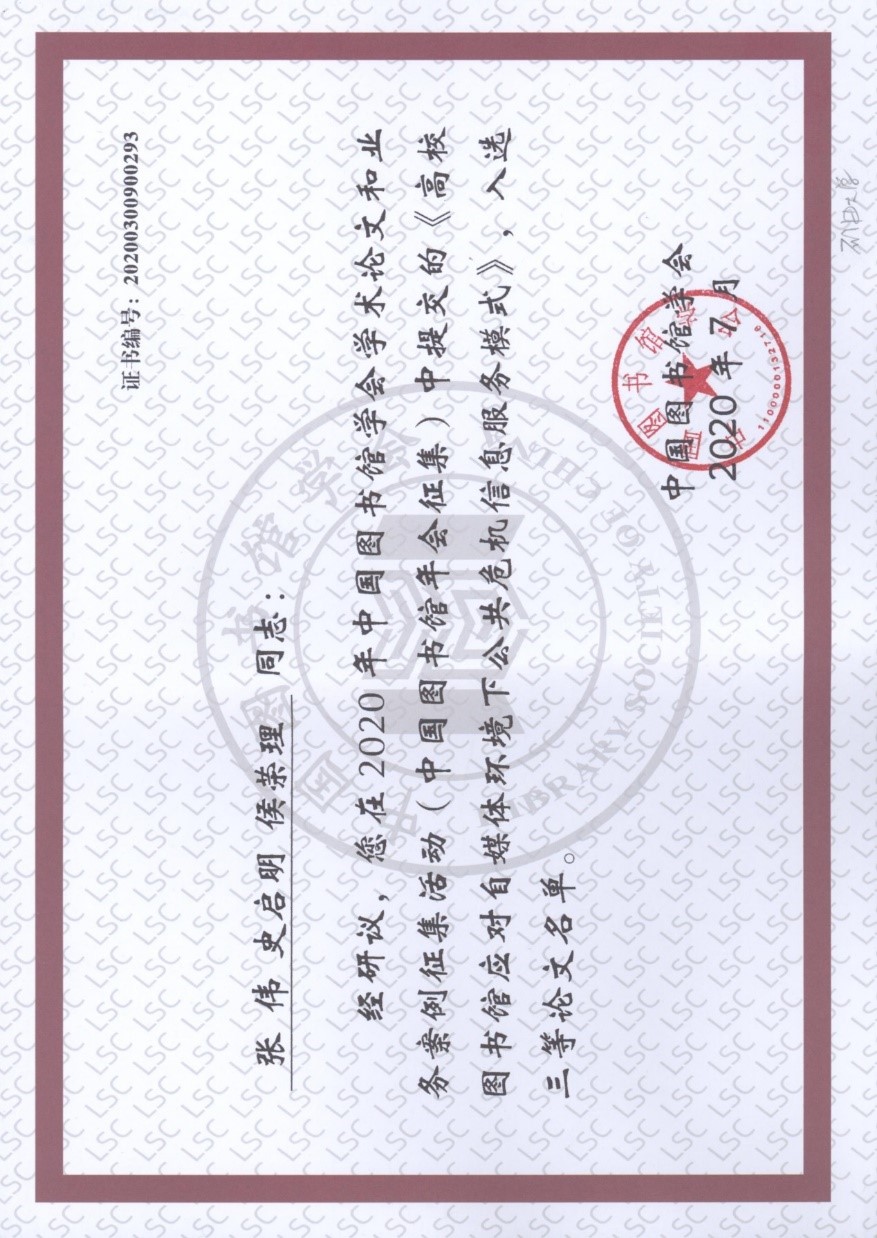 近日,beat365图书馆张伟、史启明、侯荣理提交的论文《高校图书馆应对自媒体环境下公共危机信息服务模式》入选2020年中国图书馆年会论文征集,荣获三等奖。