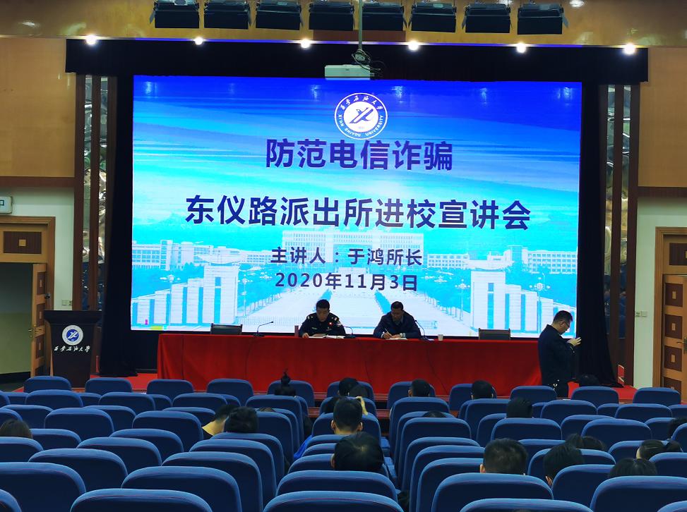 东仪路派出所所长于鸿就如何防范电信诈骗,结合实际发生在身边的案件,给现场研究生详细讲解了常见电信诈骗的内容及形式,提醒同学们提高防骗意识,预防此类案件的发生。