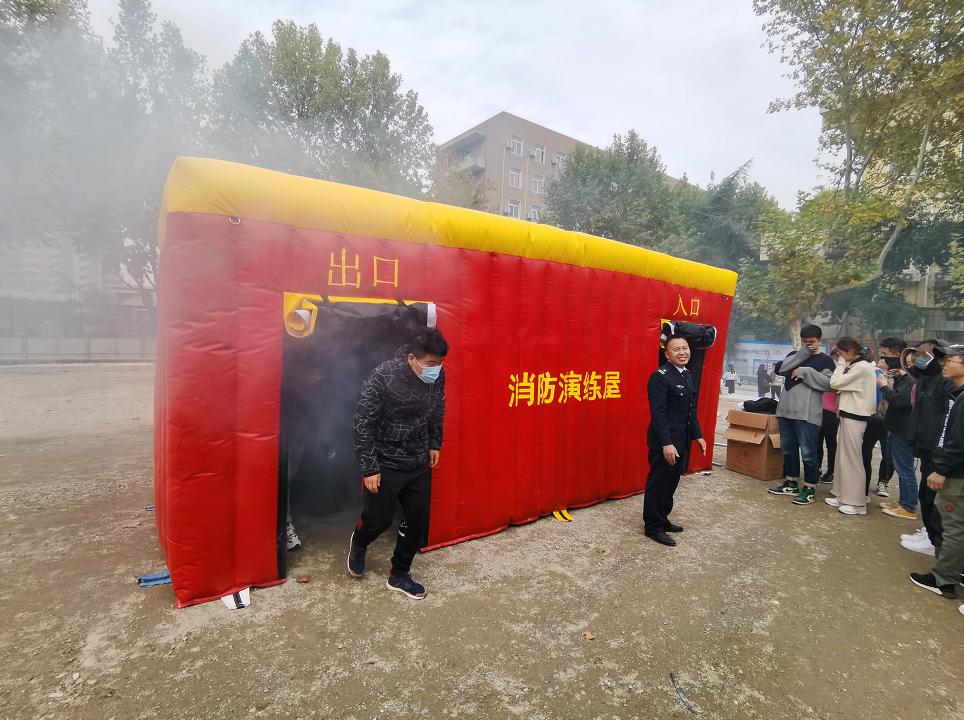 消防安全知识讲座上,陕西省安居消防中心何海立教官也从实际案例出发,生动的讲授了防火、灭火、自救等消防安全知识。讲座后,在何教官与保卫处工作人员的指挥指导下,研究生同学们来到户外参与现场演练,学习手提式灭火器的使用和模拟火场逃生,为灾中自救做好了能力储备。