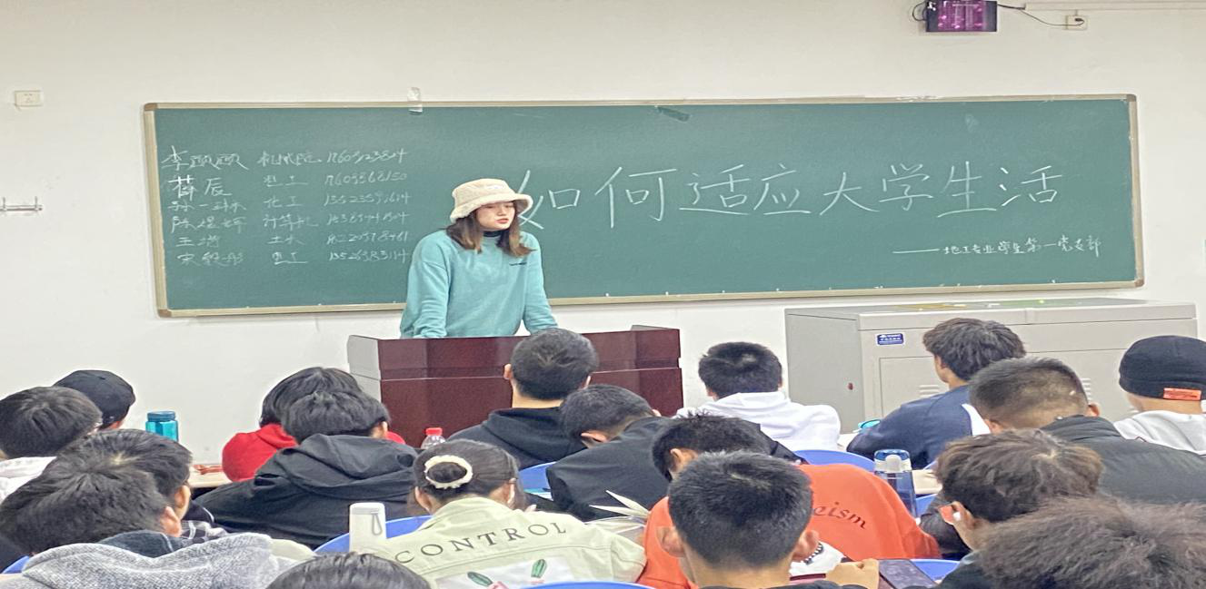 2020年10月20日晚上7:00,地球科学与工程学院地工专业学生第一党支部全体党员准时到达A233教室,利用地工专业大一新生晚自习时间,开展了“助力学弟学妹们早日适应大学生活”主题党日活动。