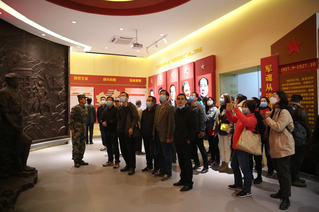 上午10时,一行人来到中国人民解放军驻渭南某部,参观“红一连”连史馆,了解部队建设情况:“1927年9月‘红一连’参加了秋收起义;‘三湾改编’中,毛泽东同志亲自在该连发展6名党员,建立我军第一个连队党支部;开创了‘支部建在连上’的先河……建连93年来,‘红一连’始终大力弘扬‘支部建在连上’的连魂,百战百胜、英勇顽强的战斗作风,官兵一致和艰苦奋斗的‘红菜盘精神’,以坚强战斗堡垒带出全面过硬连队。”随行人员一边认真听取介绍,一边询问了解“支部建在连上”的光荣历程。