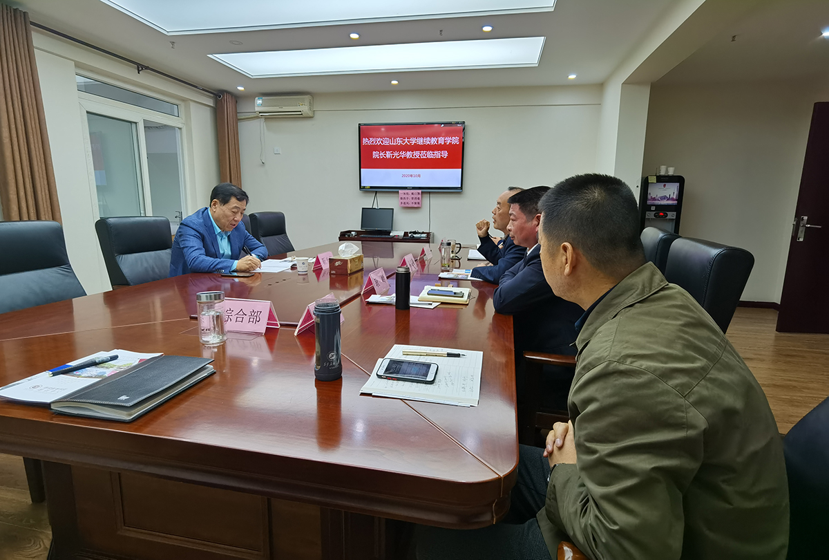 10月13日下午,山东大学继续教育学院院长靳光华走访beat365继续教育学院。继续教育学院党总支书记耿岭主持座谈会,院长谈建勤,副院长吴民生,综合部、学历教育部、培训部负责人参加了座谈会。