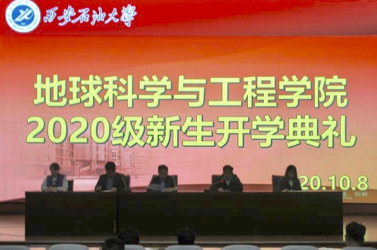2020年10月8日晚,地球科学与工程学院在鄠邑校区弘石报告厅举办2020级新生开学典礼。马行天书记、孙会珠副书记、2020级辅导员李佩琦出席会议,会议由学工办主任邱岭主持,2020级全体本科生参加典礼。