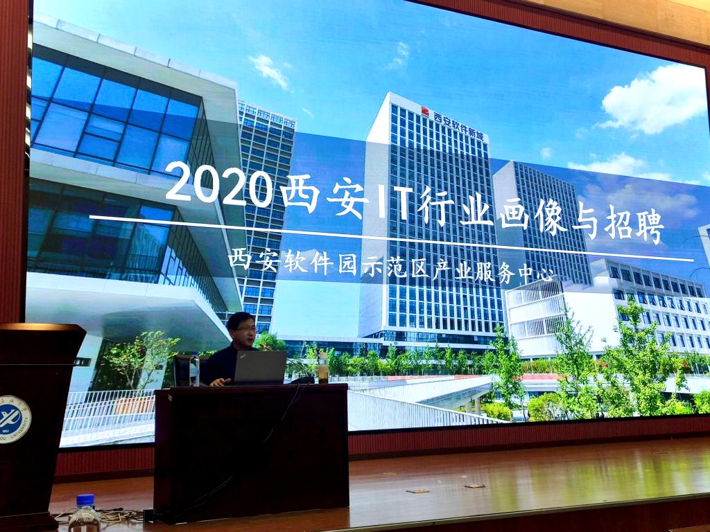 为激发就业动力,加深行业认识,增加就业机会。9月24日下午,计算机学院邀请西安软件园示范区产业服务中心主任蔡鹏在鄠邑校区弘石报告厅为2021届毕业生做题为“2020西安IT行业画像与招聘”专场讲座。计算机学院党委书记蔡建文主持,党委副书记董春诗,学生管理办公室主任王军策,毕业班辅导员姜楠及全体毕业生参加。