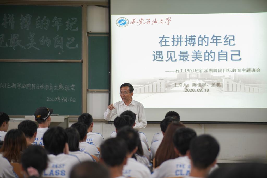 9月18日下午,石油工程学院石工1801班在鄠邑校区A208教室召开了“在拼搏的年纪遇见最美的自己——新学期阶段目标教育”主题班会。校党委副书记张木出席本次主题班会,学生工作部(处)部(处)长赵健、副部(处)长李强,校团委书记何国强,就业指导中心副主任樊晓旭,石油工程学院党委书记马勇、党委副书记张建高,学生工作部(处)学生思想教育科科长乔晓,学院辅导员、班主任及各班级代表参加了本次班会。同时,本次班会还特别邀请了经济管理学院2000级校友、中石化天然气分公司王伟明,石油工程学院2004级校友、中石化镇海炼化李娜。