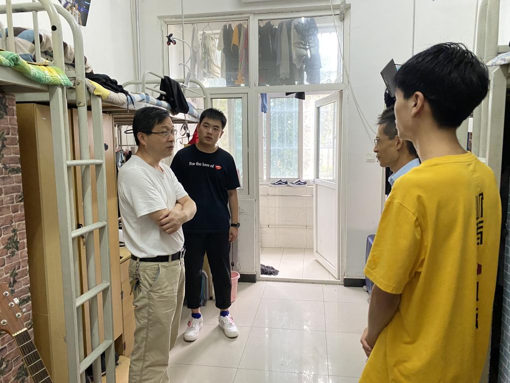 为落实学校加强疫情防控及返校学生教育管理的要求,8月23日上午,计算机学院党委书记蔡建文,党委副书记董春诗等一行深入学生宿舍,看望慰问返校学生。