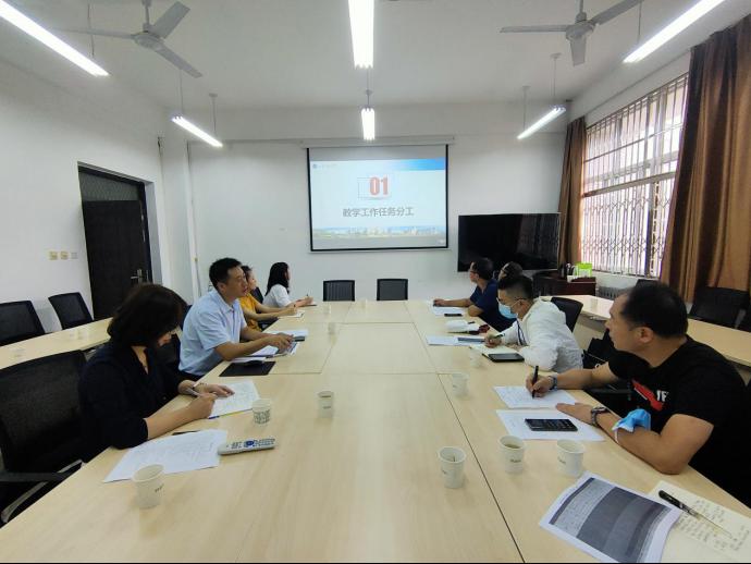 8月21日上午,外国语学院新学期教学工作会议在鄠邑校区人文经管楼314会议室召开。刘辉副院长、陈武副院长、各系部主任和教学办全体工作人员参加了会议。会议由陈武副院长主持。