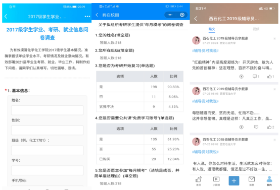 “全过程”辅导帮扶。在学院党委的统筹指导下,通过及时调研、争取资源、开放场地、精准帮扶、心理疏导等方式,对考研学生进行全过程辅导帮扶。2017级及时开展本科生考研复习、报考意愿调研,一对一完善求职简历,建立考研复试交流群,鼓励师生之间增强交流,分享考研复习方法和各高校、研究所招生信息;争取校外专业备考资源,联系开放免费网络学习资源,筹备定期举办摸底考试进行分析指导;开放学院会议室,延长早晚复习时间,为学生提供良好复习环境;各系组织专业老师积极为考研学子答疑解惑,梳理专业知识的同时,对学生英语、备考信息收集及沟通能力进行强化;各班组长定期与考研学子交流,积极引导正确看待考研焦虑等问题,鼓励同学们增强自信,相信自己。学院团委依托“易班”网络思政教育平台,在学院心理专干余靓豪老师指导下,积极开展线上交流、趣味活动等方式,关注学生心理健康,及时进行疏导帮助,为学子考研复试提供强有力的保障。