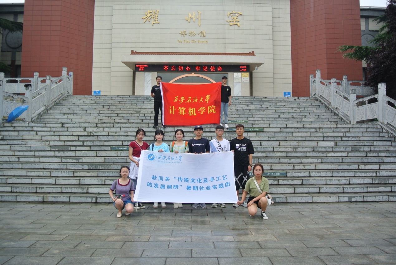 为了引导青年了解传统文化,根据校团委统一部署,8月1日至8月4日,beat365官方网站计算机学院赴同关“传统文化及手工艺的发展调研”暑期社会实践团队由指导教师王天航带领下,前往铜川开展了为期四天的社会实践活动。