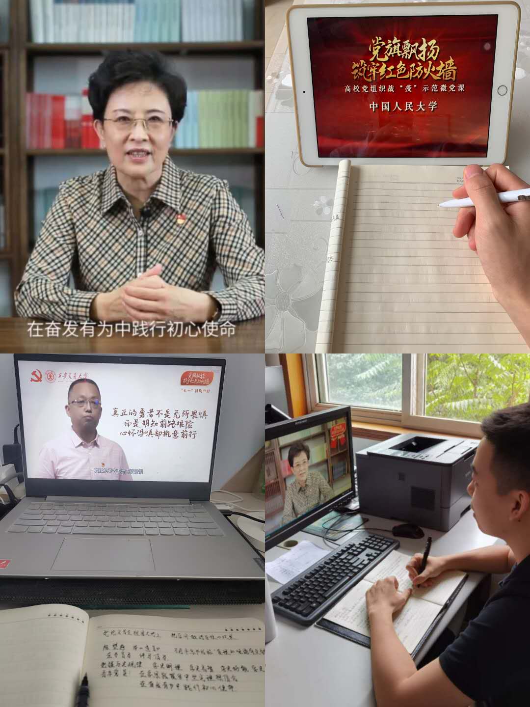 为庆祝中国共产党建党99周年,7月1日上午9点,由教育部思政司指导的高校党组织战“疫”示范微党课“七一”专题在线上开播,马克思主义学院党总支、各党支部组织全体师生党员通过线上、线下等多种方式及时收看。学院党总支委员、教师党员代表、毕业生党员代表,在党员活动室集中收看了此次党课直播。