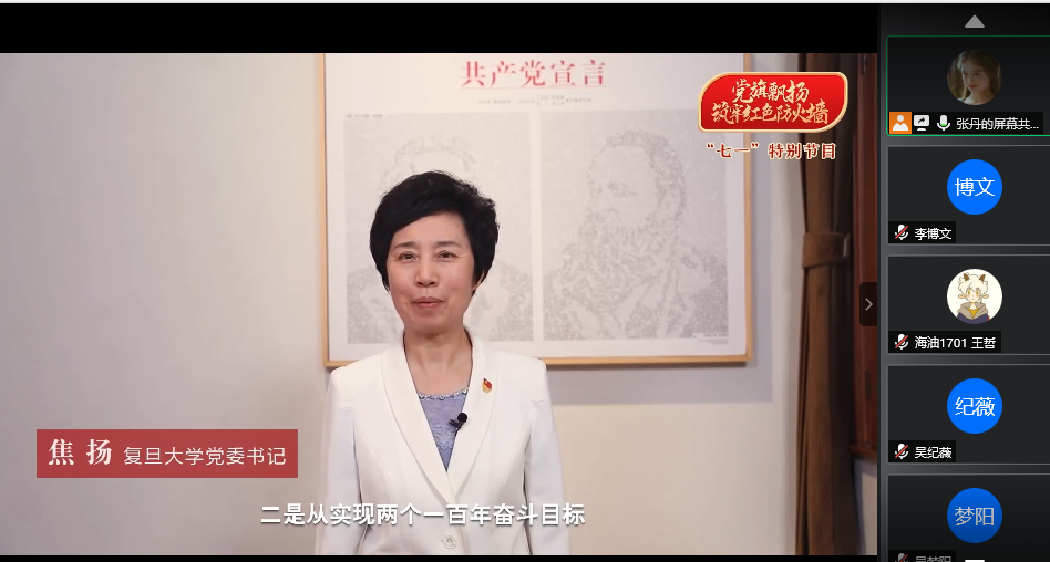 2020年7月1日上午9:00,由教育部思想政治工作司指导,中国人民大学、复旦大学、西安交通大学及北京科技大学联合制作的特别节目《“党旗飘扬筑牢红色防火墙”——高校党组织战“疫”专题微党课》,在新华网、学习强国学校思政号等网络平台播出。石油工程学院党委采取线上线下集中收看或依据支部实际情况自行安排的形式,积极组织师生党员收看并进行了讨论。