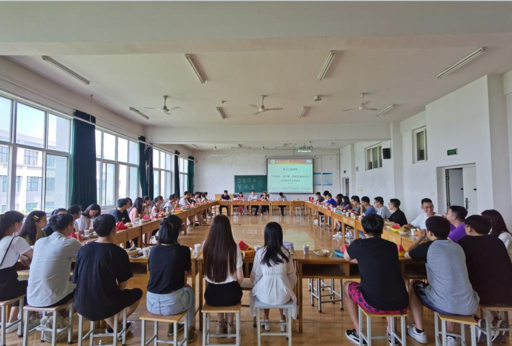 浓浓师生情,依依惜别意。2020年6月24日下午,值端午佳节来临之际,电子工程学院召开毕业生座谈会并慰问端午节在校学生。座谈会由院党委副书记毕轶慧主持,院党委书记何铖、党委副书记毕轶慧、副院长燕并男、学生管理办公室主任周毅华、全体学工干部及2020届优秀毕业生代表共计40余人参加座谈。