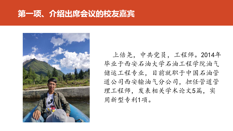 上倍尧校友从本人学生时代求职经历、个人职业生涯规划和国内外油气储运行业发展现状三个方面进行了就业指导分享,希望各位学弟学妹,一方面要提高在校期间专业课成绩,并及时通过大学英语四六级和计算机二级等相关资格考试;另一方面,要重视自身社团以及学生干部经历,在求职简历制作和面试过程中尽可能展现出本人的可迁移技能和自我管理技能。最终在毕业季,取得令自己和家人满意的成绩。