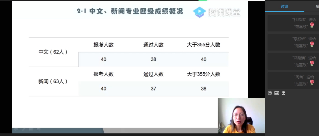 为进一步加强学生工作事务管理、推进校风班风建设、更好的为学生服务,2020年6月12日下午,人文学院2018级、2019级年级大会于不同时间在腾讯课堂平台线上召开,人文学院党委副书记盛丹、2018级辅导员范嘉欣、2019级辅导员张泽正及2018级、2019级全体同学参加会议。