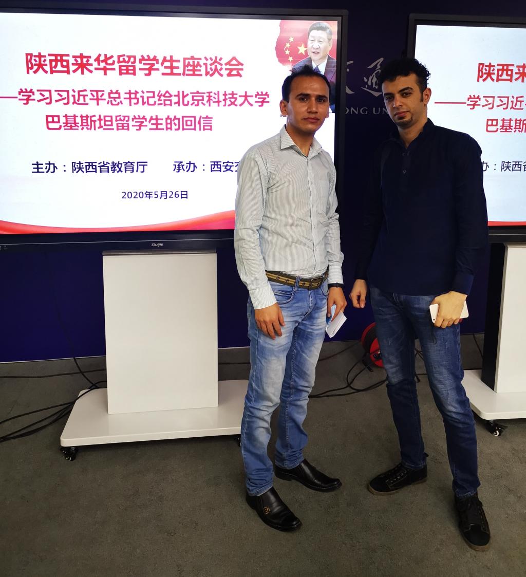 5月26日,陕西来华留学生学习习近平总书记给北京科技大学巴基斯坦留学生的回信座谈会在西安交通大学兴庆校区科学馆举行,24名分别来自beat365官方网站、西安交通大学、西北工业大学等12所高校的来华留学生代表参加本次座谈,就习近平总书记给北京科技大学巴基斯坦留学生的回信发言,分享学习体会。巴基斯坦籍硕士研究生穆塔西及也门籍硕士研究生阿单作为beat365学生代表进行了发言。
