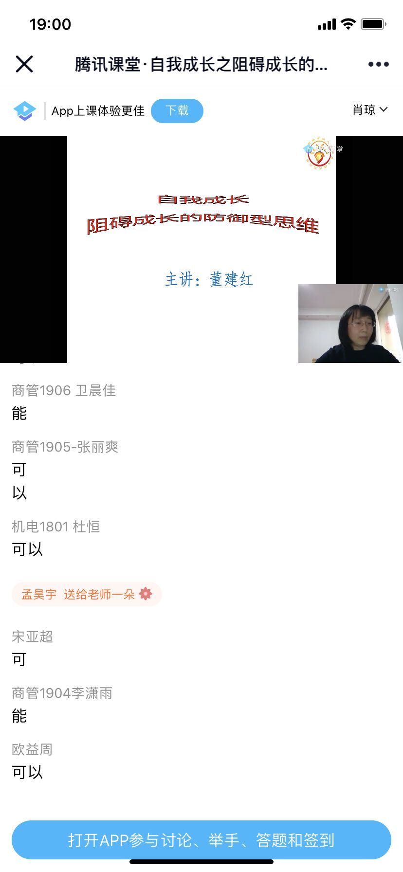 讲座最后,同学们纷纷表示通过学习,学会了正确看待生活中的挫折、成功和失败,凡事多方面思考,不要在一次失败中迷失自己,跳出防御型思维,养成成长型思维。