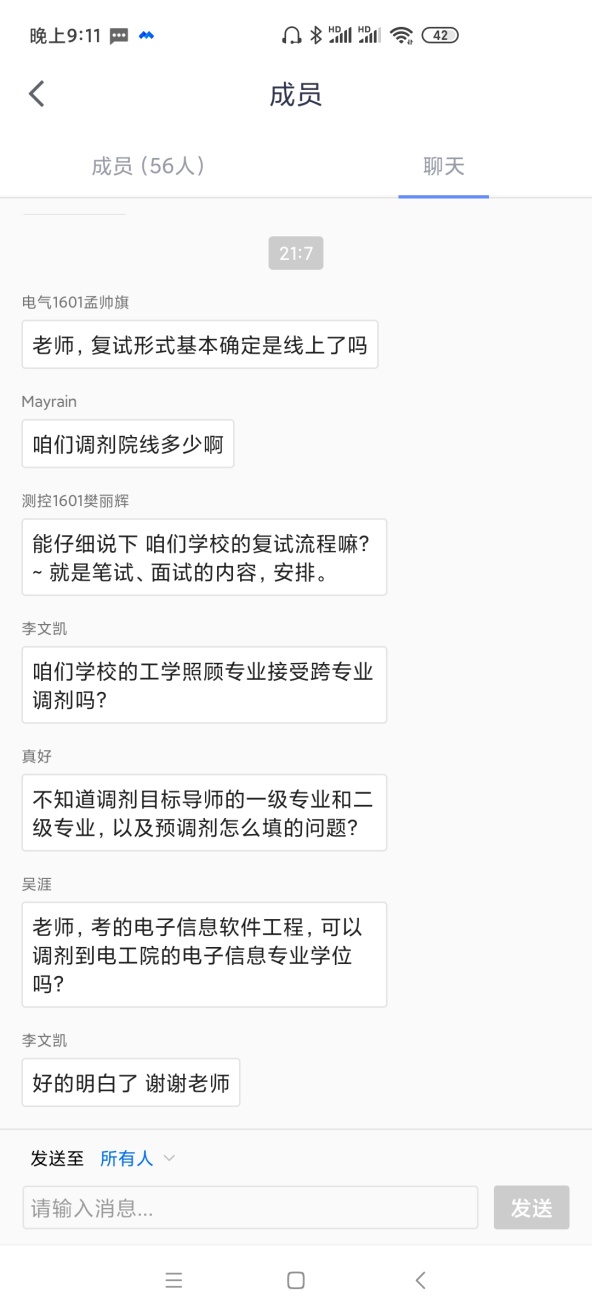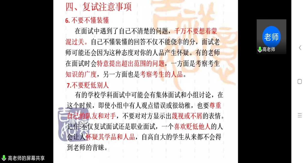 讲座的最后,毕轶慧副书记、高国旺副院长与学生进行了线上互动交流,逐一解答同学们关心的各种问题,包括全日制与非全日制硕士的区别、入围复试和录取名单的确定流程、复试准备、开学时间等问题,动员有调剂资格的同学们要积极准备、把握机遇,不要轻易放弃宝贵的读研机会。