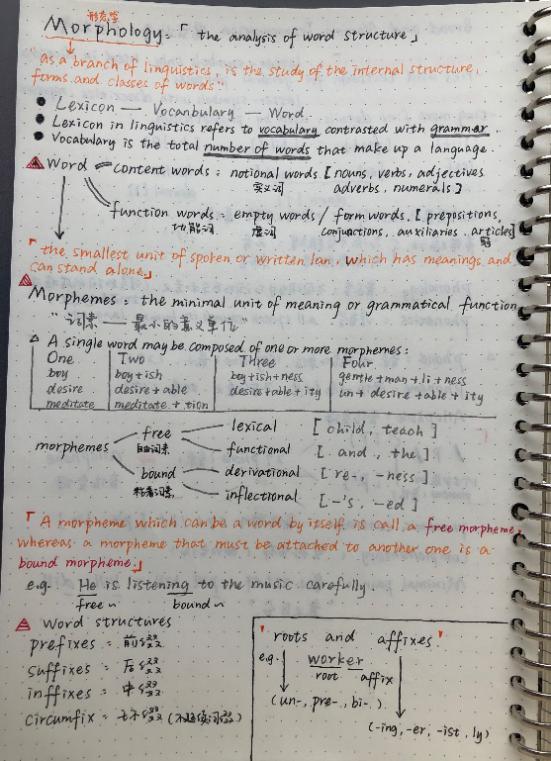 英语专业:同学们的笔记字迹优美,形式多样,用线条将知识点串联起来,条理清晰。