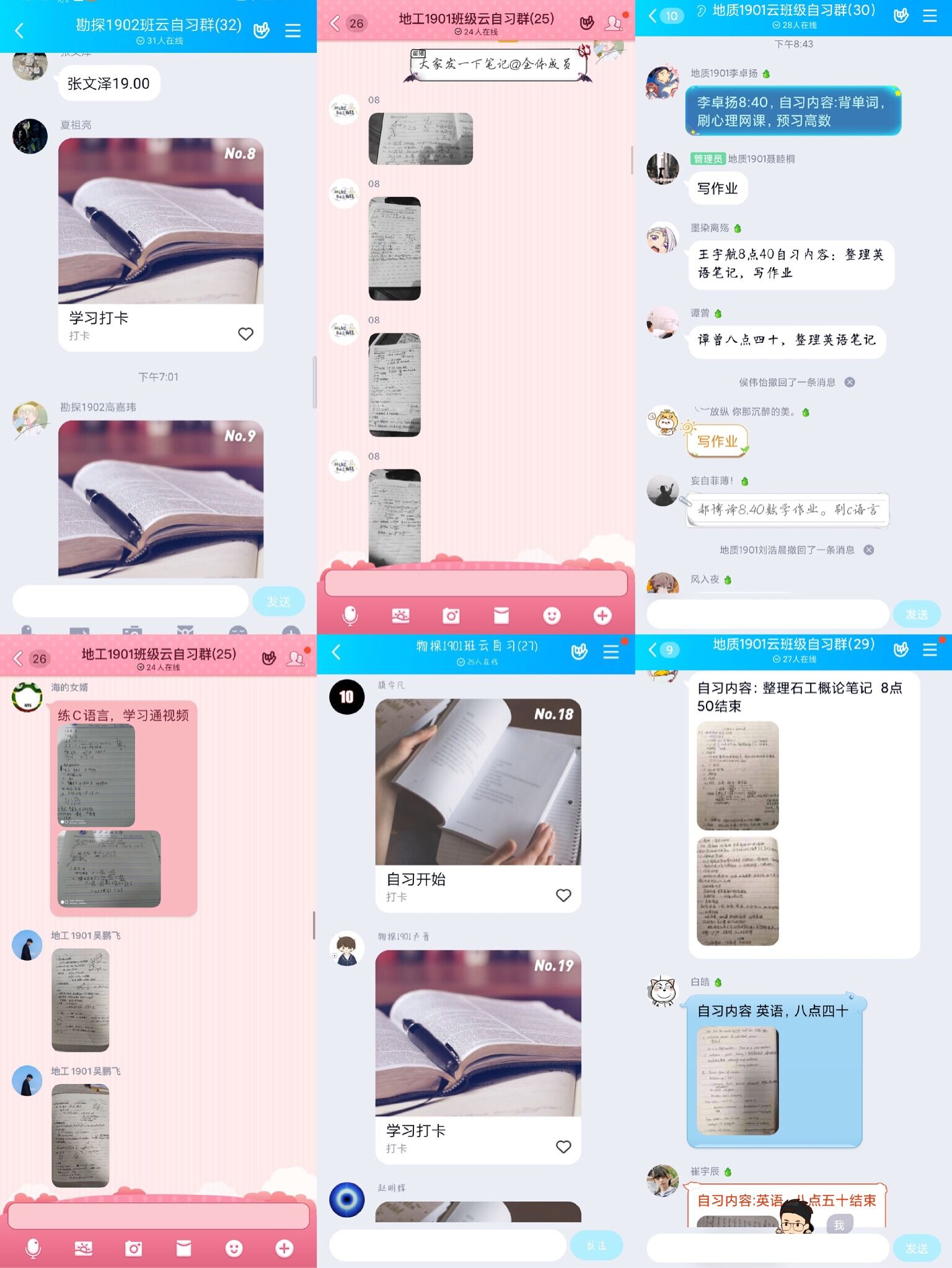 为响应教育部“停课不停学,停课不停教”号召,保证学生居家学习质量,地球科学与工程学院开展线上“云自习”活动,通过每日在指定QQ群中打卡,帮助同学们巩固所学知识,加强线上学风建设。