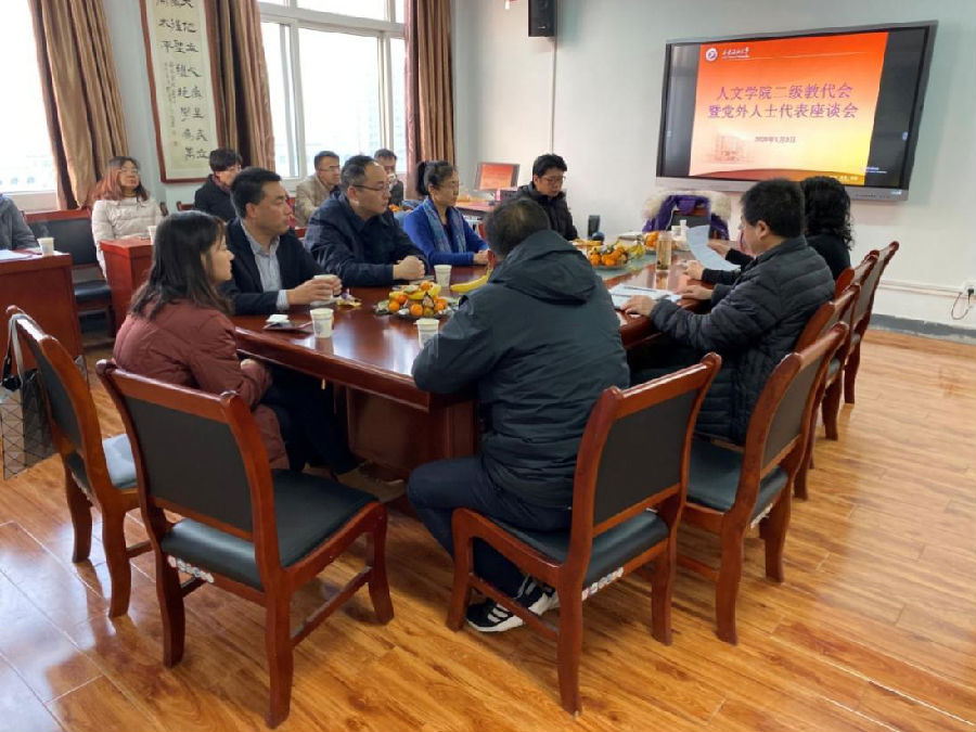 2020年1月3日上午,人文学院在雁塔校区1#教学楼813会议室召开二级教代会暨党外人士代表座谈会,人文学院党委委员、领导班子成员及学院教代会代表和党外人士代表出席,会议由学院党委书记余小勇主持。
