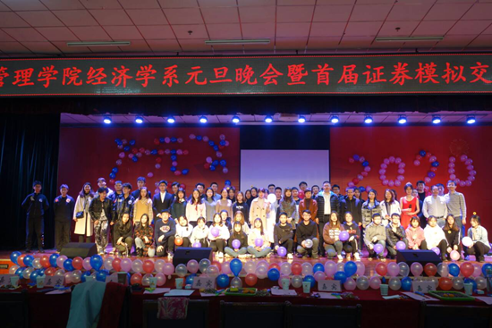 12月27日,经济管理学院经济学系元旦晚会暨首届证券模拟交易大赛颁奖典礼在鄠邑校区腾辉大学生活动中心举行。经济管理学院院长王君萍、党委副书记赵海涛,计算机学院党委副书记董春诗,华鑫证券西安南二环营业部总经理廖声隆,经济学系与学院学管办老师出席晚会及颁奖典礼现场,400余学生现场观看了晚会及颁奖典礼。