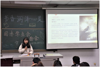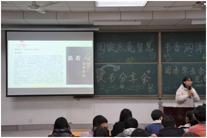 读书分享环节,团委学生会各个部门干部分享了《浮生六记》、《活着》、《围城》、《非暴力沟通》、《人生》等共十二本书籍,他们带着深刻的感悟以及对书籍独到的理解向大家分享书籍,使每个听众都受益匪浅,体会到书籍带给人们的特殊感观。