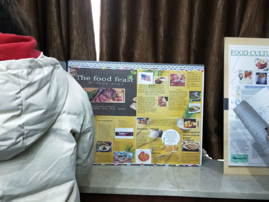 成果展示会上,各小组图文并茂的展板吸引了一大波同学前去参观。展板主题多样,包括饮食、节日、音乐、旅游等,涉及美国、英国、加拿大、新西兰等主要英语国家文化。