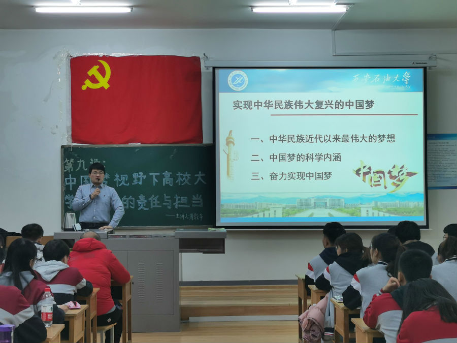 12月4日晚19:00,电子工程学院“不忘初心、牢记使命”第十八期入党积极分子培训班第九讲在鄠邑校区C3楼419教室举行。本期党课以“中国梦视野下高校大学生党员的责任与担当”为主题,由周毅华老师担任主讲,本期全体积极分子学员参加学习。