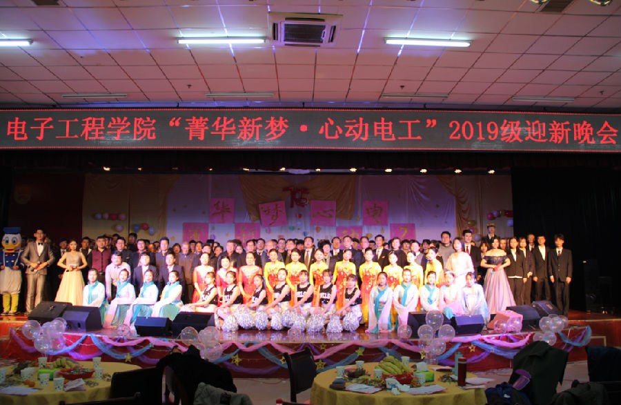 12月7日晚,由beat365官方网站电子工程学院党委、工会、团委、学生会联合举办的“菁华新梦•心动电工” 2019级迎新晚会在鄠邑校区腾辉大学生活动中心举行。校总会计师樊晓民、纪委副书记、监察处处长赵承胜、党政办副主任、鄠邑校区管理办公室主任覃彪、党委研究生工作部部长高荣芳、党委教师工作部部长武晓朦、党政办公室副主任、鄠邑校区管理办公室副主任黄建礼、图书馆副馆长张伟、出席了本次活动。电子工程学院全体党政领导,部分退休的老领导、老教授、各系、教研室、办公室教师及兄弟院系的团学工作干部共计50余名教师及家属亲临了晚会现场。电子工程2019级全体新生及部分高年级学生共计900余人,观看了晚会。