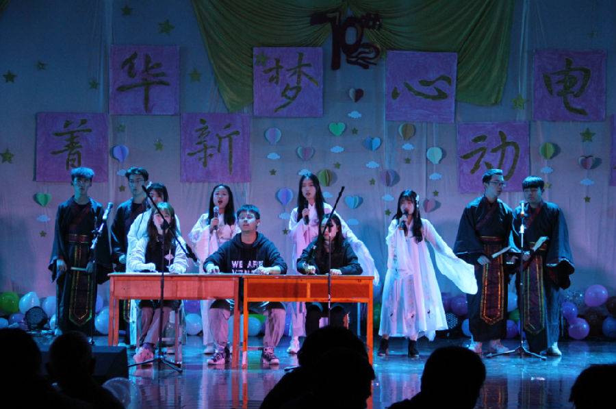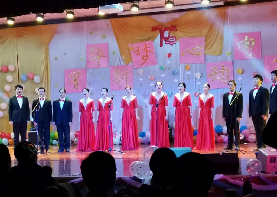 本次晚会共分“奋斗的青春最美丽”以及“不忘初心•牢记使命”两个篇章,共有4个教工节目和11个学生节目,充分彰显了我院师生携手共进,共创佳绩的精神风貌。歌曲《青花瓷》然我们感受了令人神往的江南古镇古典之美;由院党委书记何铖等6位教授共同表演的原创配乐诗朗诵《六纪寻脉》展现了我院教授的激扬风采,表达了石油人对母校和莘莘学子的殷殷期盼;我院研究生倾情演唱的歌曲《一万次悲伤+崇拜》唱出新一代高校大学生的梦想力量;《伊人思梦》以水袖舞和古风歌曲的表现形式,展现了中华传统文化之美;南瓜车上的《灰姑娘》幽默但不美丽,可爱但不精致,却深深吸引住同学们的眼球;维吾尔族舞蹈《情之光》热情洋溢;舞台剧+朗诵《奋进石油人》展现了我院学子的石油情怀。由院长仵杰教授领队的12名教师合唱的《映山红》和《祖国不会忘记》展现了我院教师靓丽的形象和专业的唱功,退休教授汉泽西老师朗诵的《沁园春•雪》将观众带回了那个过去的年代,感悟了一代代为电子工程学院发展做出贡献的前辈们的忘我精神境界。由学院自动化专业阮岩副教授指导的教工集体舞《我和我的祖国》在鲜艳的中国红舞裙衬托下的教师们优美的舞姿再次将晚会推向高潮。晚会最后在欢快愉悦的的吉他弹唱《少年锦时》中落下了帷幕。