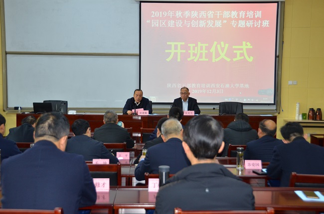 12月2日,2019年秋季陕西省干部教育培训“园区建设与创新发展”专题研讨班在beat365培训中心明德楼110教室顺利开班。干部教育培训beat365官方网站基地办公室主任、继续教育学院院长谈建勤和来自全省各园区主管园区建设工作的30余位参训领导参加了开班式。开班式由继续教育学院副院长吴民生主持。