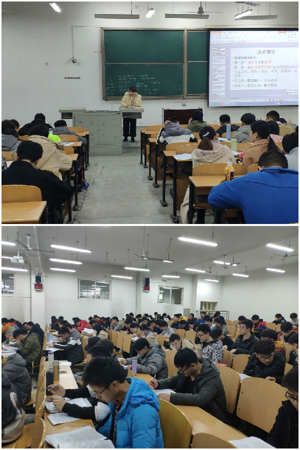 2、第九周至十二周周日晚7点至9点30分,于B101和B102教室严格按照英语四级考试要求,连续举办3次英语四级模拟考试和1次英语晚自习,并由薛洋同学对所有同学试卷进行批阅与纠错。