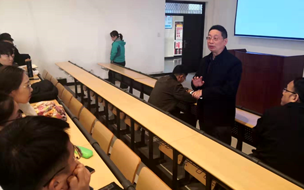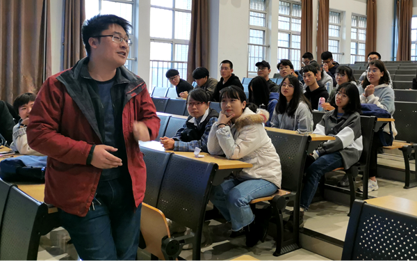 接着,系党支部书记徐向前老师结合“不忘初心、牢记使命”主题教育,向同学们介绍了学校和我院主题教育的开展情况。他强调指出,教师的职责就是为学生传道、授业、解惑,作为党员教师,完全有责任有义务走在前列,充分发挥先锋模范作用,既教书又育人。徐老师还就期中教学检查中同学们的反馈意见,组织老师与同学们一起交流互动,答疑解惑,引导同学们正确认识和积极面对学习生活中面临的困难。