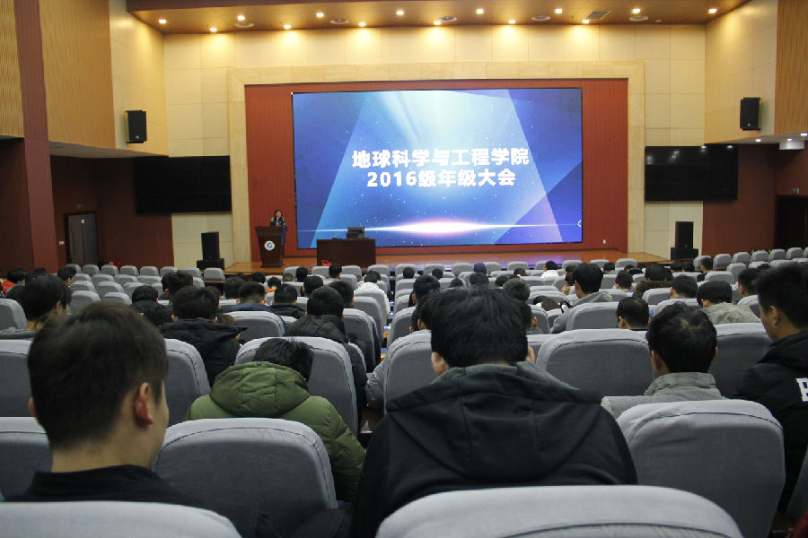 2019年12月3日中午12点,地球科学与工程学院在鄠邑校区弘石报告厅召开2016级年级大会暨安全诚信教育大会。会议由2016级辅导员张阳老师主持,地球科学与工程学院2016级全体学生参加。