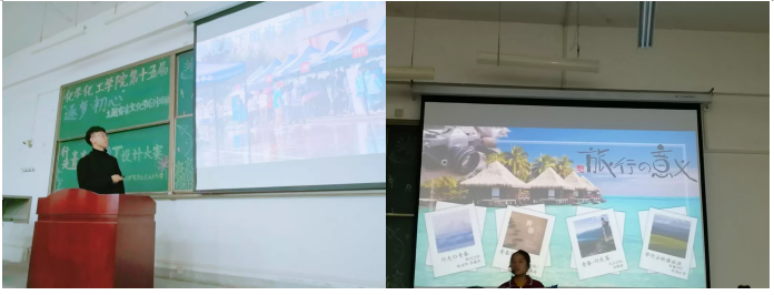 我们都听过这样一句话:“生活不止眼前的苟且,还有诗和远方的田野”。 作为学生,学校、课堂并不是我们唯一的营地,有那么一些同学,他们会在闲暇时光和家人或是好友相约出门走一走。今天,在化学化工学院第十五届“逐梦•初心”主题宿舍文化节里,秘书部举办了一场“行走青春”PPT大赛来让同学们展示自己旅途中遇到的美景。
