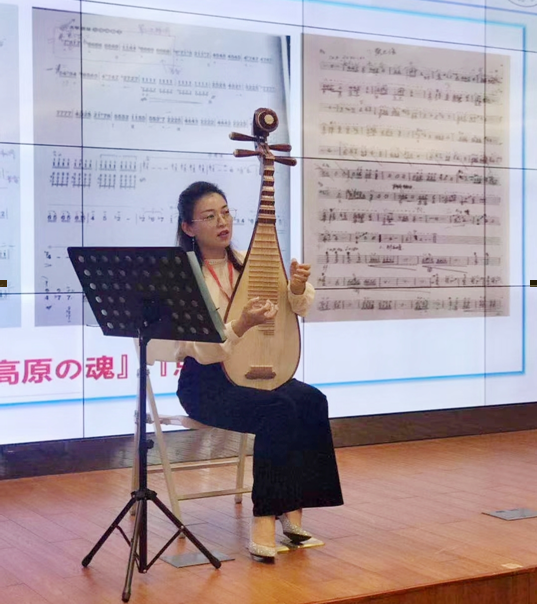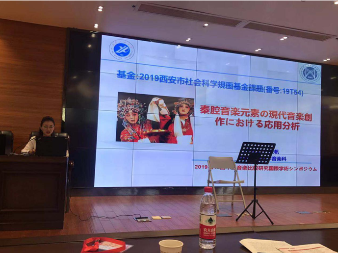张帆副主任根据撰写的《秦腔音乐元素的当代音乐创作中的应用分析》的论文,进行了主题发言交流,内容分为引言,秦腔的研究现状,秦腔音乐元素的当代创作,秦腔音乐元素当代应用的意义,结语五个部分,并在现场展示演奏和示范,得到了专家的一致肯定与认可。