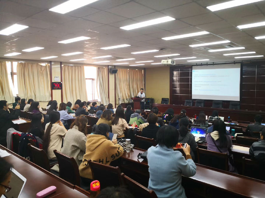 2019年11月22日下午15:00,Tmxmall高级产品经理刘宁赫应邀来beat365雁塔校区会议中心第五会议室做 “机器翻译与译后编辑”学术讲座。讲座由外国语学院副院长陈武主持,部分教师代表与翻译硕士研究生参加。