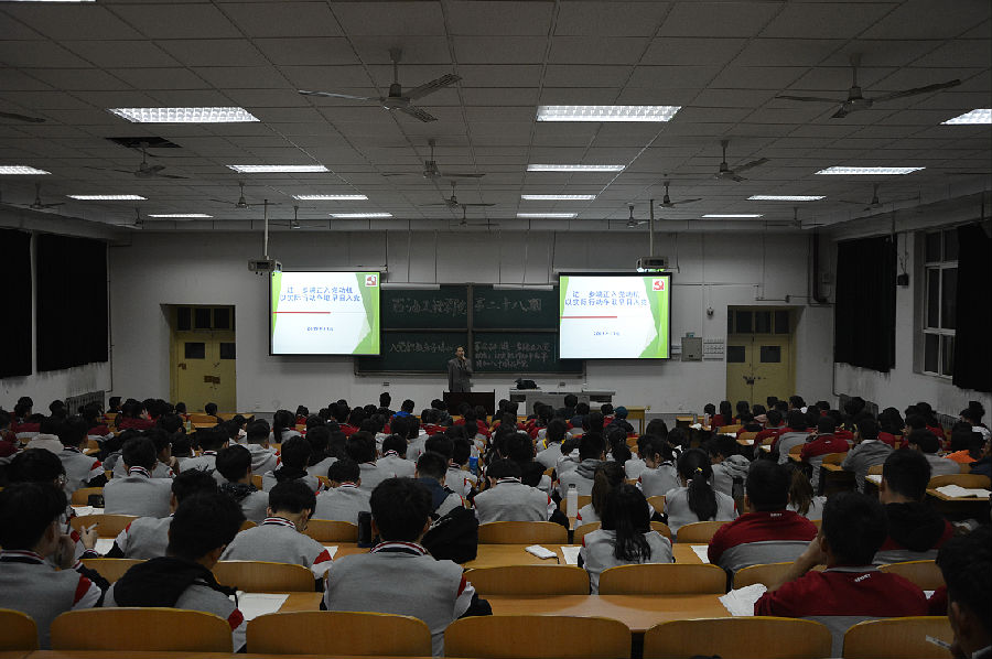 为深入学习马克思主义理论知识,进一步端正入党积极分子的入党动机。11月19日晚,石油工程学院第二十八期入党积极分子培训班第四讲在鄠邑校区教学A区234室顺利进行。校纪委正处级纪检员王宏卫老师为全体入党积极分子作了题为“进一步端正入党动机,争取早日加入中国共产党”的党课培训。