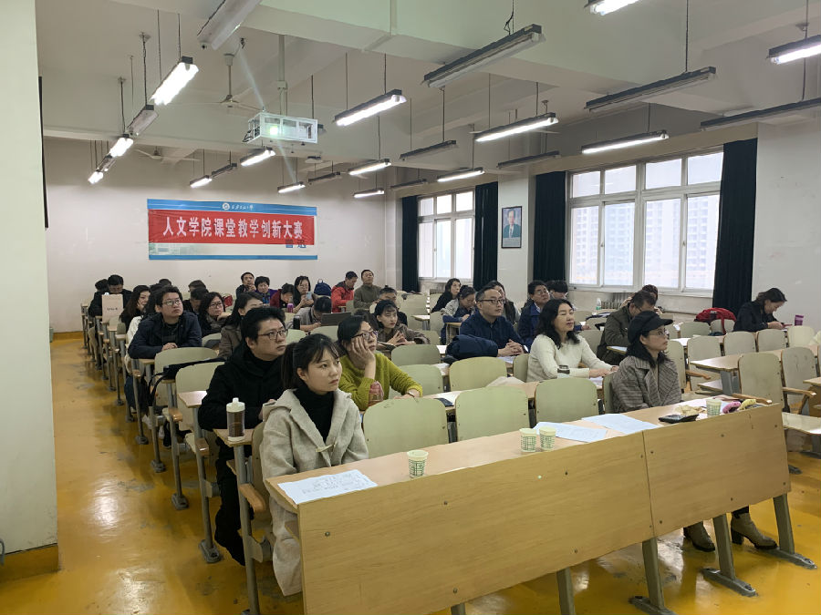 为了进一步贯彻落实教育部、陕西省教育厅有关文件精神,促进高校课堂教学改革与创新,进一步发挥课堂教学改革在创新教学理念、教学内容、教学方法、教学手段和教学评价等方面的导向作用,引导广大教师有效利用现有教学资源,合理应用信息技术,积极投入课堂教学创新实践,以赛促教,以赛促改,实现课堂教学由“以教为中心”向“以学为中心”的转变,切实提高课堂教学质量,不断提升人才培养水平。11月20日下午,人文学院在雁塔校区2号教学楼举办了第二届课堂教学创新大赛暨2019年教师讲课比赛。