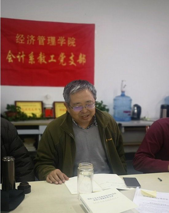 宁宇新教授做了《立足本职岗位、履职尽责、做忠于职守的高校教育工作者》的主题发言。宁老师首先讲到高校教师应主动理论学习,提高政治素质,不断提升理论水平。工作中要求真务实,努力进取,不断开创工作新局面。宁老师结合近期本科毕业论文自评情况,会计系教师党员要高度重视专家的意见和建议,高标准严要求地进行论文指导工作。会计系要严格执行论文题目论证流程及各环节的检查,做好毕业论文工作。