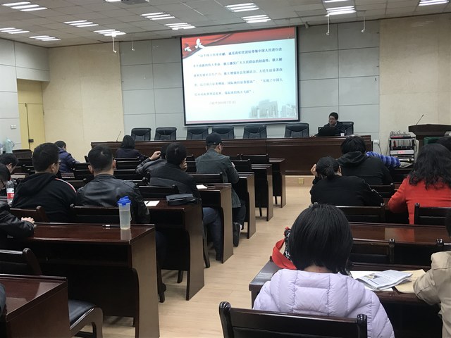 讲座主讲人、人文学院党委书记余小勇为理学院全体教工讲述了中国共产党建党初期的历史,重点讲述了红军长征的光荣革命史。余小勇书记用大量的史实、照片,向听众展示了红军从第一次反围剿到长征胜利的英雄足迹,从党的不懈奋斗史、党的理论探索史、党的自身建设史三个阶段为大家详细梳理了中国共产党的发展历史。和大家一起重温了习近平总书记关于我党历史发展的主题和主线的重要论述,勉励全院教工在党的旗帜下,继续“不忘初心、牢记使命”,立德树人,做“四有”好老师。