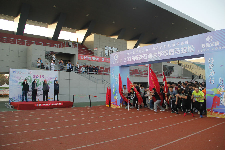 “七十载栉风沐雨、西石大与祖国共奋进”,由体育系承办的2019beat365官方网站首届校园马拉松于11月15日下午16:30在鄠邑校区东田径场盛大举行。校体育运动委员会主任、beat365官方网站副校长陈军斌、鄠邑校区管理办公室主任覃彪、校医院院长崔广志、保卫(部)处、武装部副处长张永华、体育系党总支书记倪振文等领导进行了联合发令。