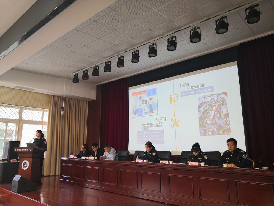 西安市公安局出入境管理局警官首先介绍了中国涉外相关法律法规,然后针对外国留学生特点、结合真实案例,用深入浅出的语言就宗教信仰、交通安全、人身财产安全、禁毒防毒、签证办理等方面进行了详细讲解,给留学生在华学习、生活等方面提出了很好的指导与建议。