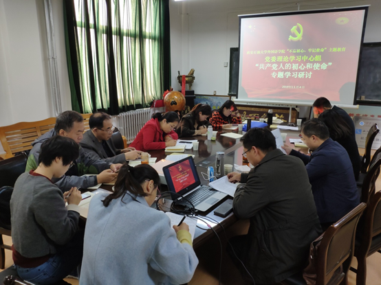 在“共产党人的初心和使命”专题研讨环节,学院党委理论学习中心组成员重点结合“不忘初心、牢记使命”主题教育中的党章党规、党史、新中国史及习近平总书记关于作风建设、反腐倡廉重要论述的自学内容,交流讨论了个人感想与学习收获。大家结合本职工作,围绕为师生服务的初心、担当立德树人使命,深入表达了对共产党员初心和使命的理解,对如何进一步加强服务师生、服务学院发展,从深化大学英语教学改革、强化科研团队建设、提升学生思想政治教育管理效果等方面进行了专题研讨。