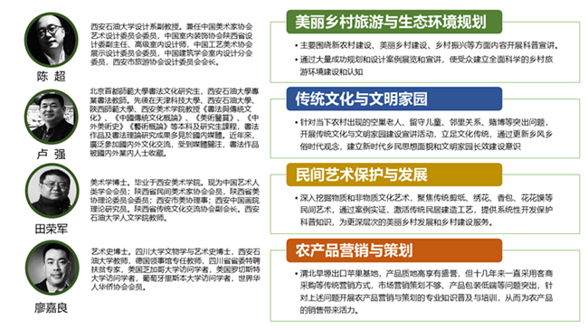 此次活动是省社科联2019年度陕西省社科普及资助项目,项目组从今年3月份开始,以“调研为基、以实为本、突出重点、解决问题”为原则,陈超、卢强、田荣军、廖嘉良等4位老师分“美丽乡村旅游与生态环境规划”“传统文化与文明家园”“民间艺术保护与发展”“农产品营销与策划”四大板块进行了系列科普宣讲。