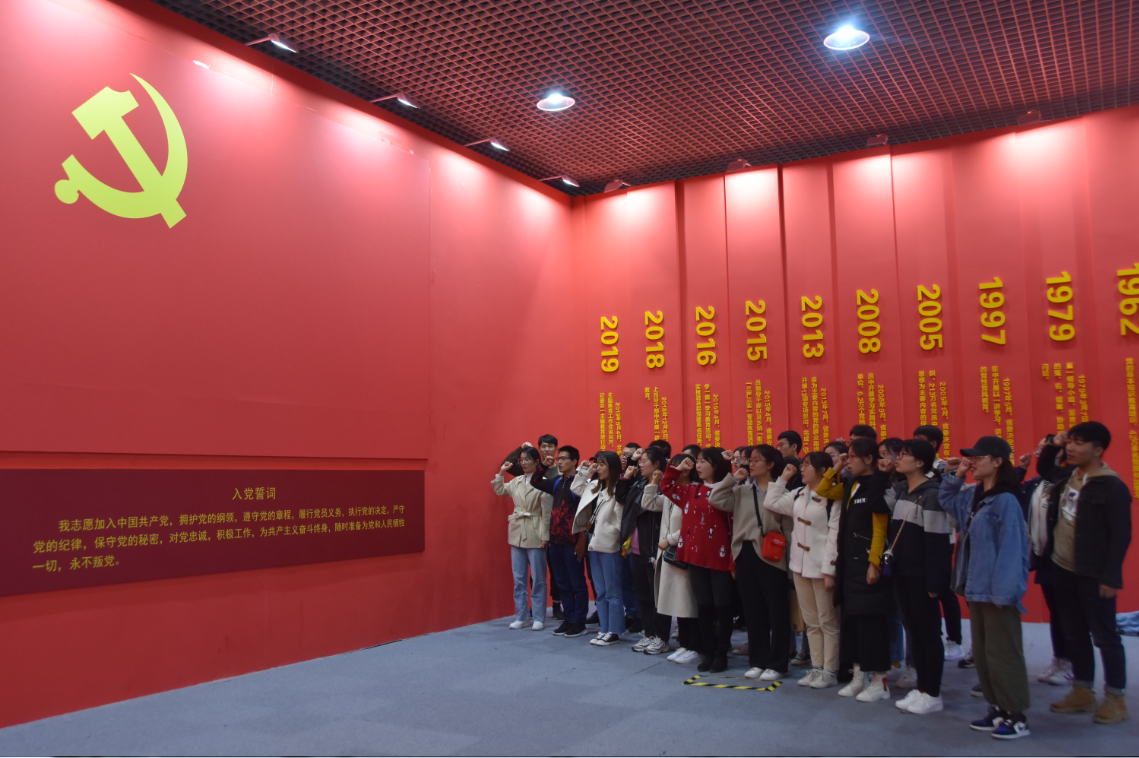 师生党员们认真聆听讲解,仔细驻足观看,一个个大事件、一项项大工程、不同年代的生活实物和巨变对比的主题场景不仅激发了同志们的极大兴趣和无限的遐想与追忆,而且深刻感悟了我们70年来的筚路蓝缕和宏伟征程。